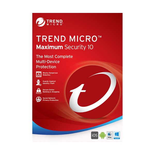 Trend Micro™ Maximum Security 10 vous permet de profiter sereinement de votre vie numérique en toute confidentialité grâce à sa protection complète pour dispositifs multiples.