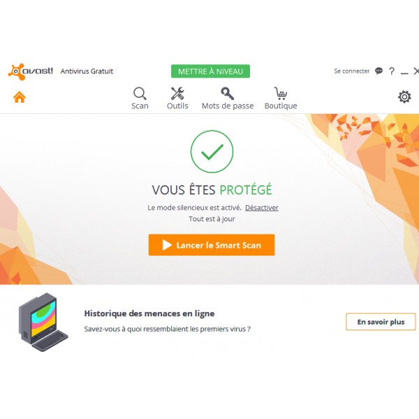 Avast Antivirus Gratuit vous offre une protection essentielle contre les virus et les malwares. Il comprend un scan gratuit pour votre réseau domestique qui détecte 12 types de failles de sécurité sur votre routeur ainsi qu’un tout nouveau gestionnaire de mots de passe qui vous permet de vous connecter à tous vos comptes en ligne à l’aide d’un seul et unique mot de passe. Avast Antivirus Gratuit se voit d’ailleurs récompensé par PC Mag qui lui attribue une note de 4,5 sur 5 ainsi que la mention « Excellent » lors du PC Mag’s Editor’s Choice Award.